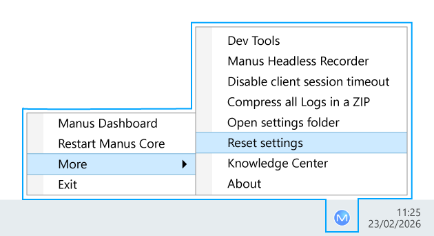 Reset all MANUS Core settings
