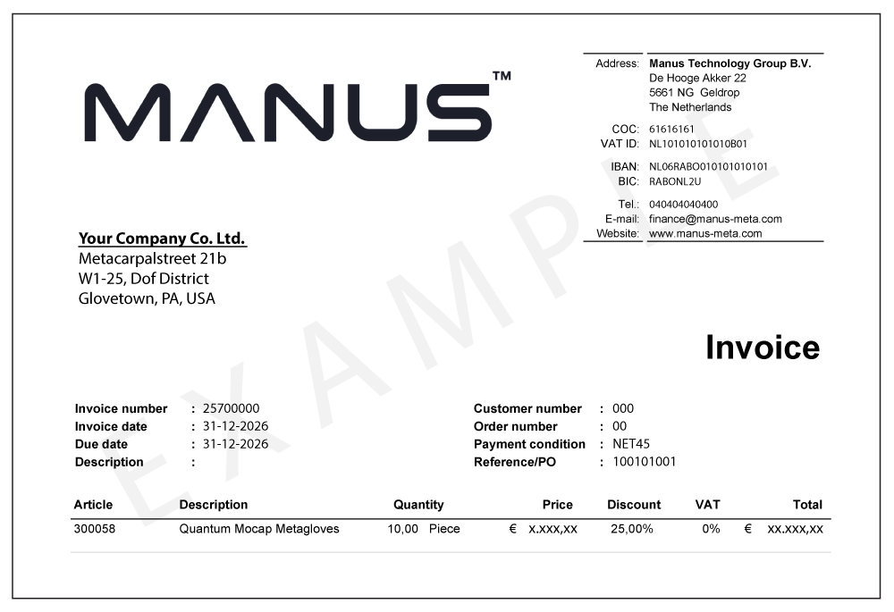MANUS Product Invoice