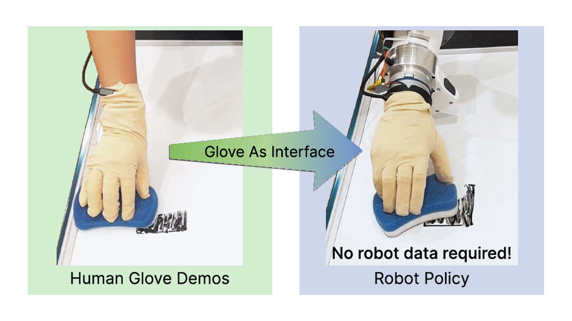The MANUS and OSMO system was evaluated on a contact rich wiping task using a Franka robot arm with a dexterous robotic hand. Robot policies were trained exclusively on human demonstrations captured with MANUS gloves and OSMO tactile feedback, without using any robot interaction data.